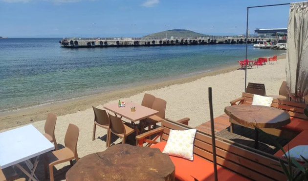 Bizim en beğendiğimiz yer. Çünkü aşağıda bahsedeceğimiz diğer beache göre daha sakin. Bu bizim tercihimiz tabi. Giriş ücreti olarak sahil 200, İskelede 300 Lira. Tabi ki fiyatlara 2 şezlong ve şemsiye dahil. Aynı zamanda ek olarak alkol ve yiyecek servisleri de var. Fiyatlar bize çok yüksek gelmedi. Dilerseniz kısaca bahsedelim. Tost 80, dürüm 120, köfte ekmek 130, makarna 150 Lira. Asitli içecekler 40, türk kahvesi de 30 Lira. Eğer alkol kullanacaksanız en ucuzu bira. O da 50’lik 130 Lira. Hafta sonu için aşağıda bırakacağım numaradan arayıp rezervasyon yaptırabilirsiniz.