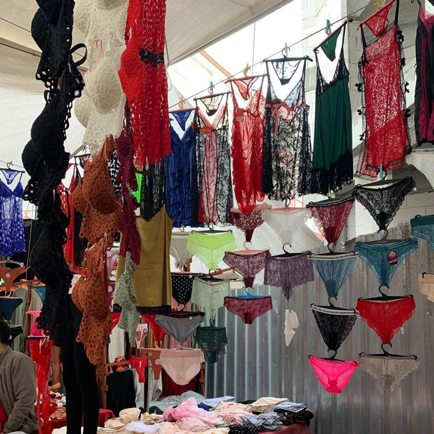 Pazar bu konuda da oldukça zengin. Özellikle kadın iç çamaşırlarında model, renk ve çeşit bakımından ne ararsanız fazlası ile var. Saten gecelik, fileli çorap, pijama takımı gibi ürün çeşitlerini rahatça bulabilirsiniz. Erkekler için de fanila, alet ve boxer çeşitleri ile kış ayları için içlik, yaz ayları için de ince pijama takımları var. Kumaşlar da oldukça kaliteli.